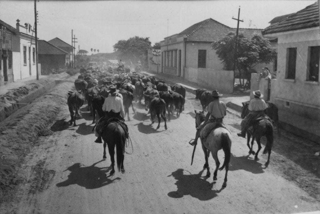 São Jerônimo – Boiada atravessando as ruas – década 1960 08/09/2020 Por André Prati Fonte: não identificada.