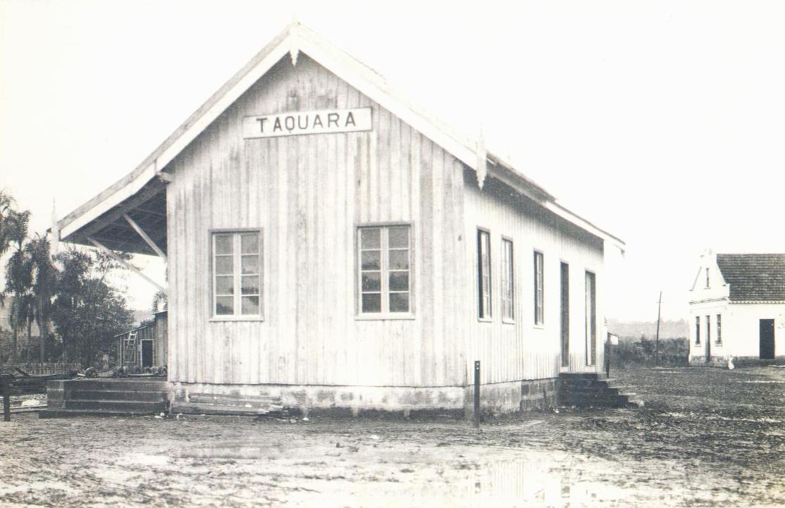 Taquara – Estação dentro do depósito de máquinas chamada de estação canelinha – década 1910