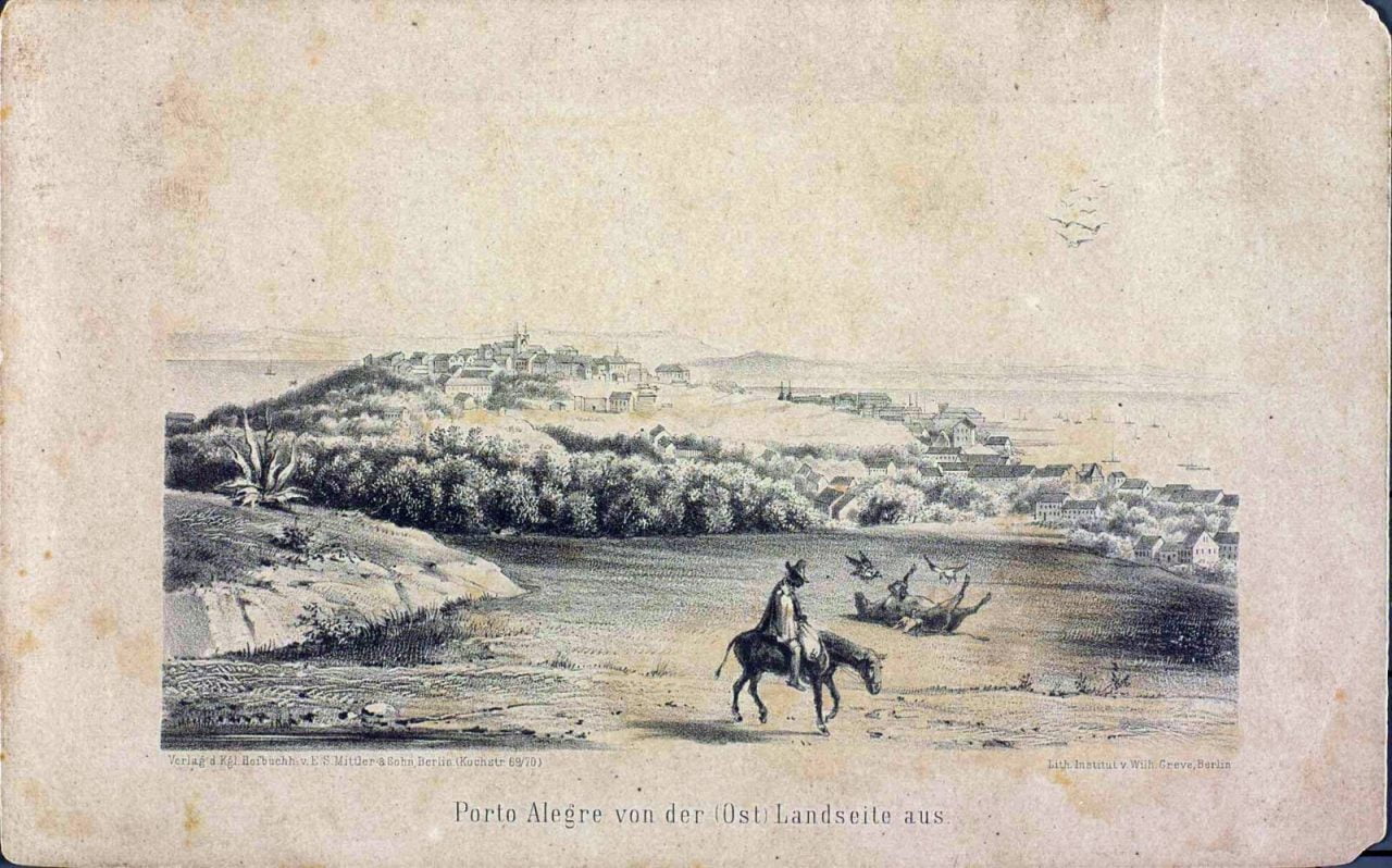 Porto Alegre – Gravura Igreja da Matriz e Palácio do Governo – Procissão – 1852