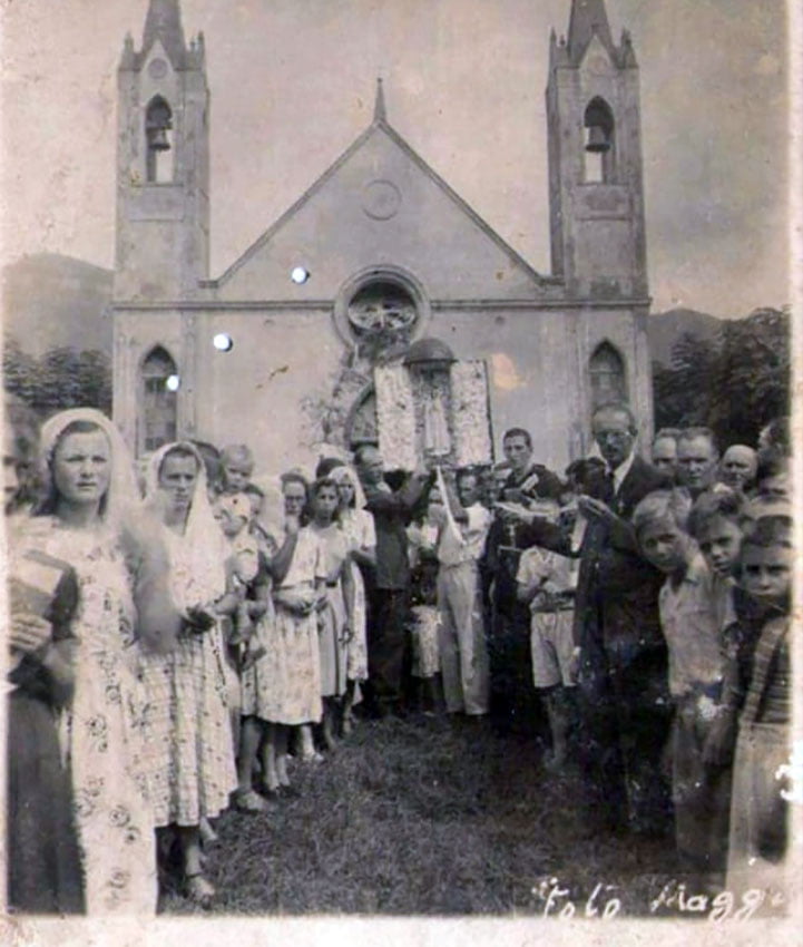 Três Cachoeiras – Igreja – Morro Azul – década 1930 29/10/2020 Por André Prati Fonte: não identificada.