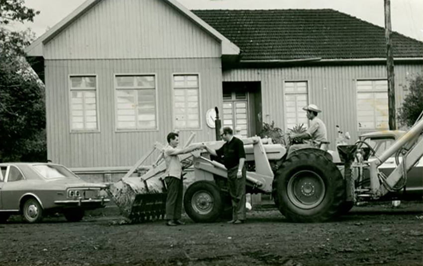 Vicente Dutra – Compra primeira máquina retro-escavadeira – década 1970 28/07/2019 Por André Prati Fonte: acervo Evandro Wolff.